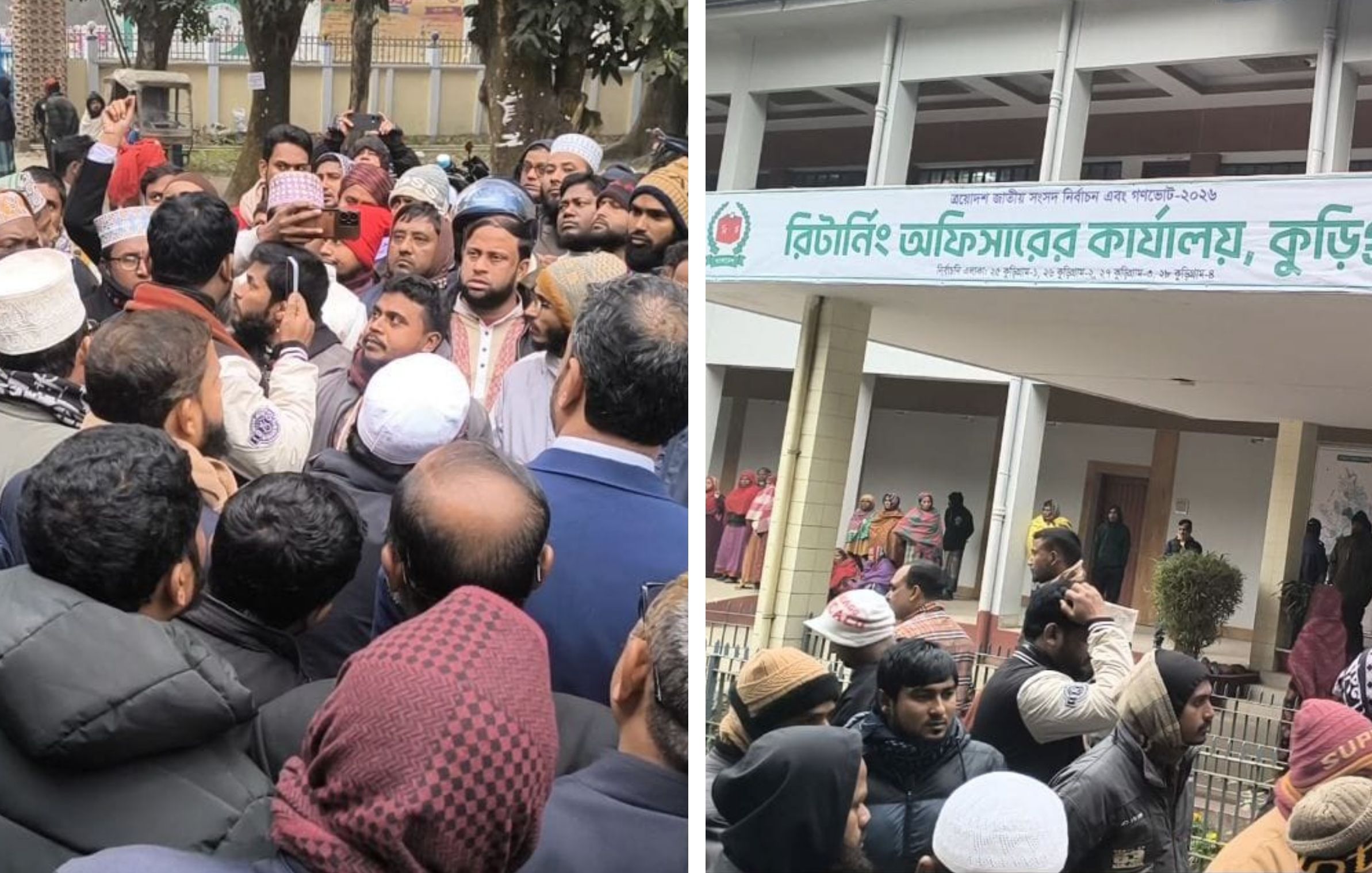 ত্রয়োদশ জাতীয় সংসদ নির্বাচনে প্রার্থীদের মনোনয়নপত্র বাছাই প্রক্রিয়ায় কুড়িগ্রাম-৩ আসনের জামায়াতের প্রার্থী মাহবুব আলম সালেহীর মনোনয়ন চূড়ান্তভাবে অবৈধ ঘোষণাকে কেন্দ্র করে জেলা প্রশাসক কার্যালয়ে বিক্ষোভ করেছে জামায়াতের নেতা-কর্মীরা। উত্তেজনা নিয়ন্ত্রণে অতিরিক্ত সেনা, পুলিশ ও গোয়েন্দা পুলিশ এসে রিটার্নিং কর্মকর্তা ও জেলা প্রশাসক কার্যালয় চত্ত্বরে থমথমে পরিস্থিতি নিয়ন্ত্রণ করছে।