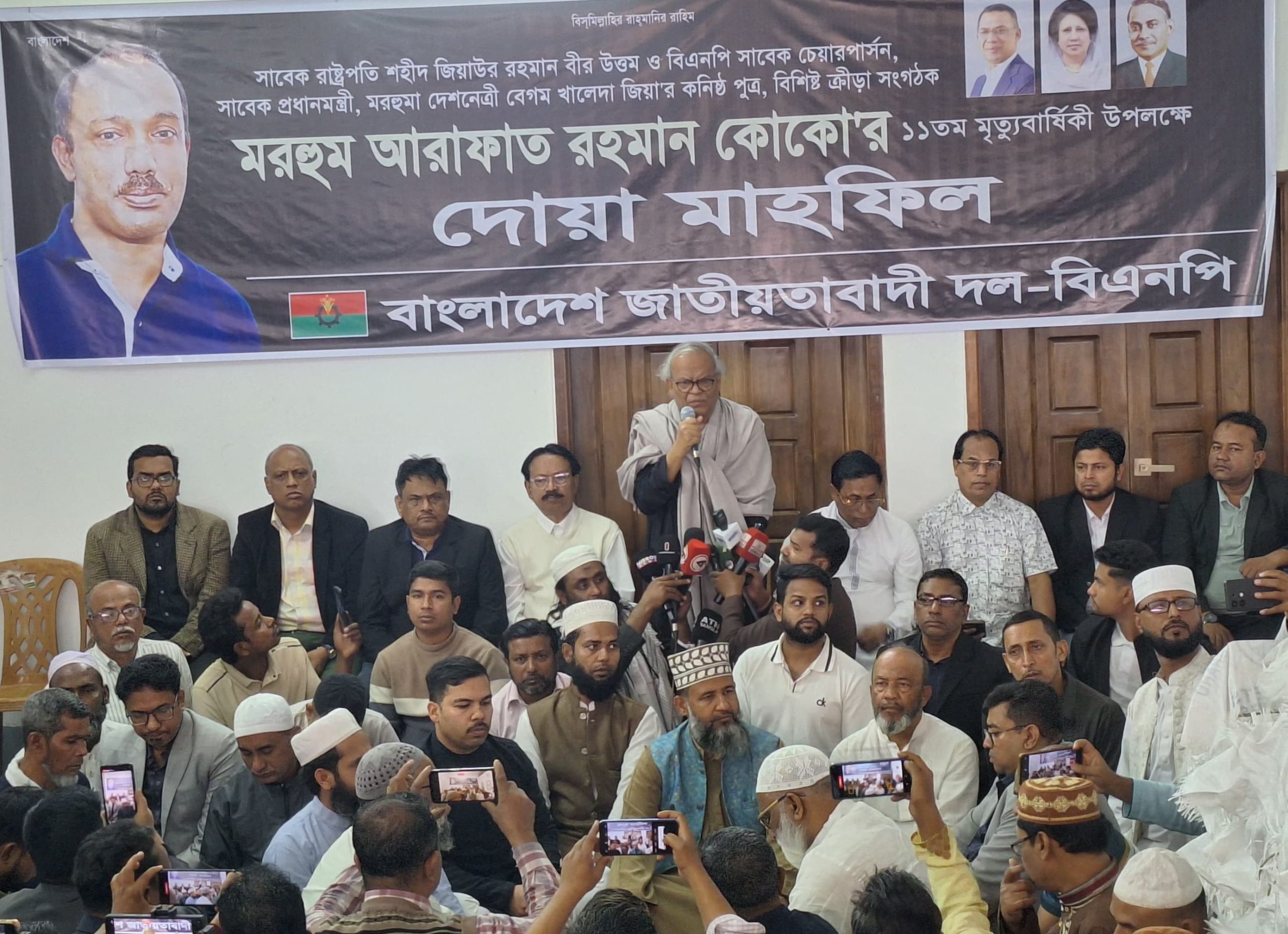 শনিবার ২৪ জানুয়ারি রাজধানীর নয়াপল্টনে বিএনপির কেন্দ্রীয় কার্যালয়ের নিচতলায় দলটির উদ্যোগে সাবেক রাষ্ট্রপতি শহীদ জিয়াউর রহমান বীর উত্তম ও বিএনপি সাবেক চেয়ারপার্সন, সাবেক প্রধানমন্ত্রী, মরহুমা দ বেগম খালেদা জিয়া’র কনিষ্ঠ পুত্র, বিশিষ্ট ক্রীড়া সংগঠক মরহুম আরাফাত রহমান কোকো’র ১১তম মৃত্যুবার্ষিকী উপলক্ষে