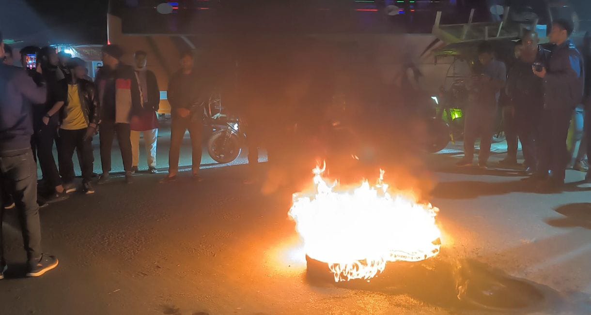 হাদীর গুলিবিদ্ধের ঘটনায় কুড়িগ্রামে বিক্ষোভ,সড়ক অবরোধ,টায়ারে আগুন
