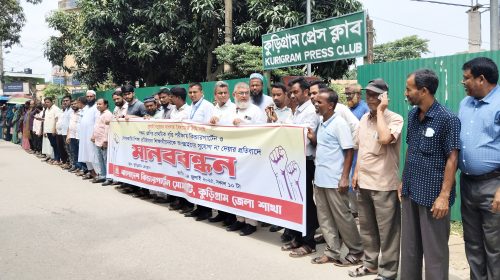 কুড়িগ্রামে কিন্ডারগার্টেন ও বেসরকারি শিক্ষা প্রতিষ্ঠানের শিক্ষার্থীদের পঞ্চম শ্রেণির বৃত্তি পরীক্ষায় অংশগ্রহণের সুযোগ না দেয়ার প্রতিবাদে মানববন্ধন অনুষ্ঠিত হয়েছে। বৃহস্পতিবার (২৪ জুলাই) সকাল সাড়ে ১০ টায় কুড়িগ্রাম প্রেসক্লাবের সামনে বাংলাদেশ…