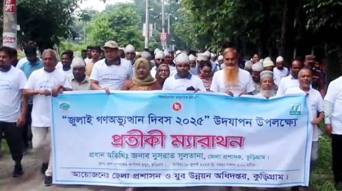 ২৪ এর"" জুলাই গণঅভ্যুত্থান দিবস "২০২৫ উৎযাপন উপলক্ষে কুড়িগ্রামে প্রতীকী ম্যারাথন অনুষ্ঠিত হয়েছে। এতে অংশগ্রহন করে জুলাই যোদ্ধা, জেলা প্রশাসন, পুলিশ প্রশাসন ও বিভিন্ন সরকারি বেসরকারি প্রতিষ্ঠানের কর্মকর্তারা। শুক্রবার সকাল…