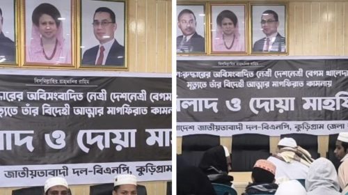 কুড়িগ্রামে সাবেক প্রধানমন্ত্রী বেগম খালেদা জিয়ার মাগফিরাত কামনায় দোয়া মাহফিল অনুষ্ঠিত